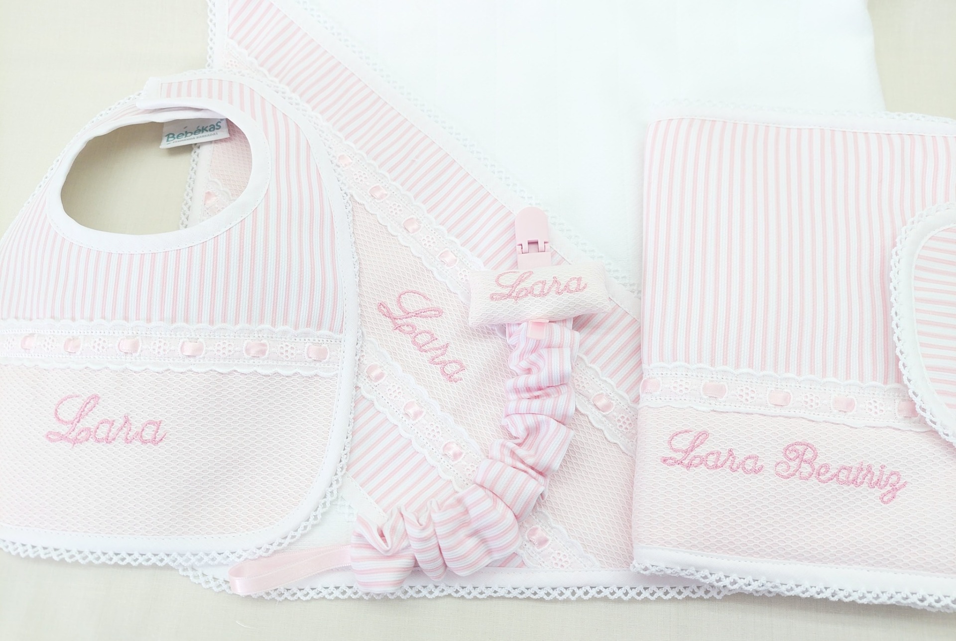 As peças podem ser personalizadas com o nome do bebé.
